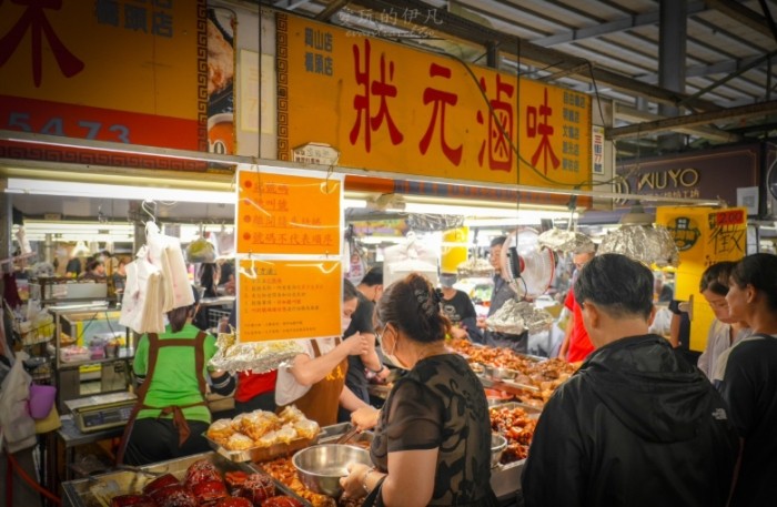 洪記滷得入味 | 食材滷透香氣足,冷熱皆有,鴨血嫩大腸Q | 冷滷拼盤(豆干脆腸) + 熱滷鴨血 | NT$50起 | 熟食區近肉乾攤 |