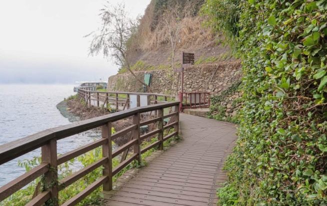 - 水社親水步道 & 涵碧步道: 這是最經典、最好入門的湖岸路線。從 水社碼頭 一路連接到 涵碧樓。路面平坦寬敞(涵碧段多是木板棧道),推嬰兒車、輪椅都OK。視野開闊,看遊艇劃過水面,看山巒倒影,就是標準日月潭明信片風景。適合: 所有人!尤其帶長輩小孩、只想輕鬆散步看湖景的你。缺點嘛… 就是太熱門了,假日人潮洶湧,想拍個獨照得抓緊時機。涵碧步道靠近飯店那段,維護得超好,但人工痕跡也比較重,看個人喜好囉。黃昏時分來,夕陽灑在湖上,那個金光閃閃,還是很值得。