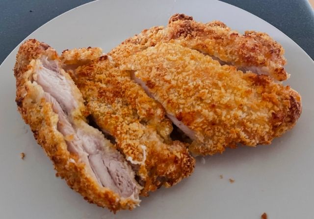- 用「氣炸」取代「油炸」!這是我最推崇的方式。噴或刷上一層薄薄的油(用好的橄欖油或酪梨油),設定好溫度時間,出來的效果雖然沒有油炸那麼酥脆(少了大量吸油的麵衣),但外皮還是有一定脆度,重點是油脂少非常多,「炸雞排熱量」可以大幅降低。我試過,200g 的雞胸肉氣炸出來,熱量可能不到 400 大卡,比外面賣的少快一半!